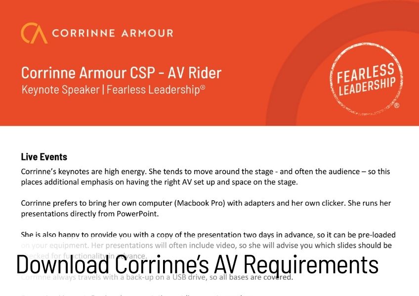 In one convenient location, here you will find everything you need for before, during, and after Corrinne speaks at your event. If there is anything else you need, get in touch.